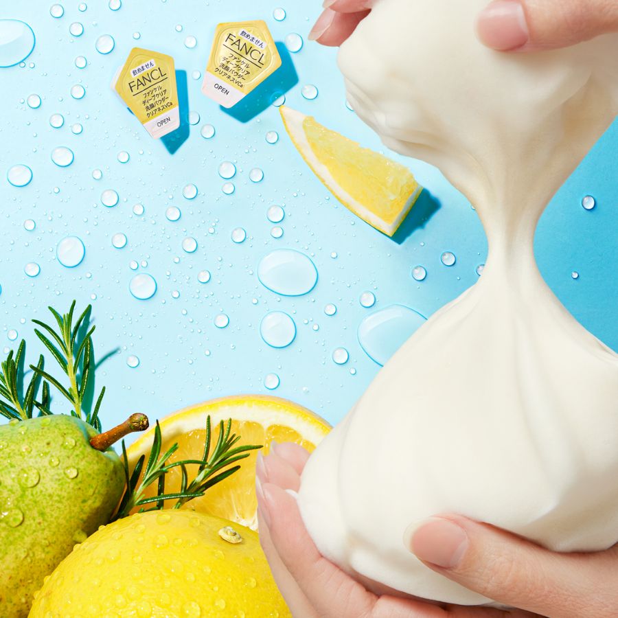 Deep Clear Face Wash Powder, a popular black enzyme face wash, has been a favorite item since its release in 2019, consistently ranking in @cosme's Best Cosmetics every year. This face wash powder uses the power of enzymes, charcoal, and adsorptive mud to thoroughly remove pore impurities. It cleanses while protecting the skin's moisture, removing dark spots and comedones that can mar the impression of beautiful skin. The cleansing action of protease targets the proteins that cause comedones and rough texture, charcoal efficiently scrapes off pore impurities such as those on the skin's surface, and clay, rich in mineral components, firmly adsorbs comedones and other pore impurities and waste. These three steps thoroughly capture pore impurities. Fancl's unique amino acid cleansing component protects the skin's moisture, preventing tightness after washing, and the action of sugars and hyaluronic acid provides superior moisturizing effects. It cleanses while maintaining the skin's natural moisture, leading to a smooth and refined complexion. The "dense cushion foam formula" creates quick and easy-to-make fine, elastic foam. The voluminous and bouncy foam allows you to wash your pores without rubbing. Recommended for those concerned about blackheads and comedones, rough skin texture, poor makeup adhesion, and oily T-zones. If you want to try an enzyme face wash but are concerned about skin dryness, want to enjoy a comfortable face wash with plenty of foam, or want to care for your pores without rubbing, this product is for you!