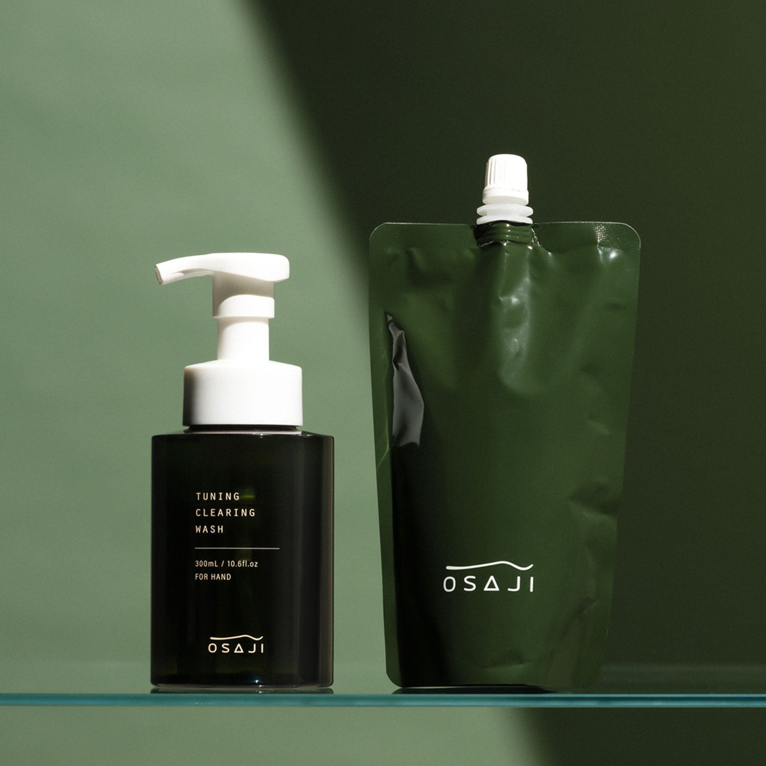 Always refill into the original "OSAJI Tuning Clearing Wash" bottle. Be careful not to spill the liquid when opening the cap. Place the spout on the bottle's opening and pour slowly. Do not wash the bottle or pump before refilling to avoid contamination; use as is. If you do wash the bottle or pump, ensure they are completely dry before refilling. Do not use the product directly from the refill pack.