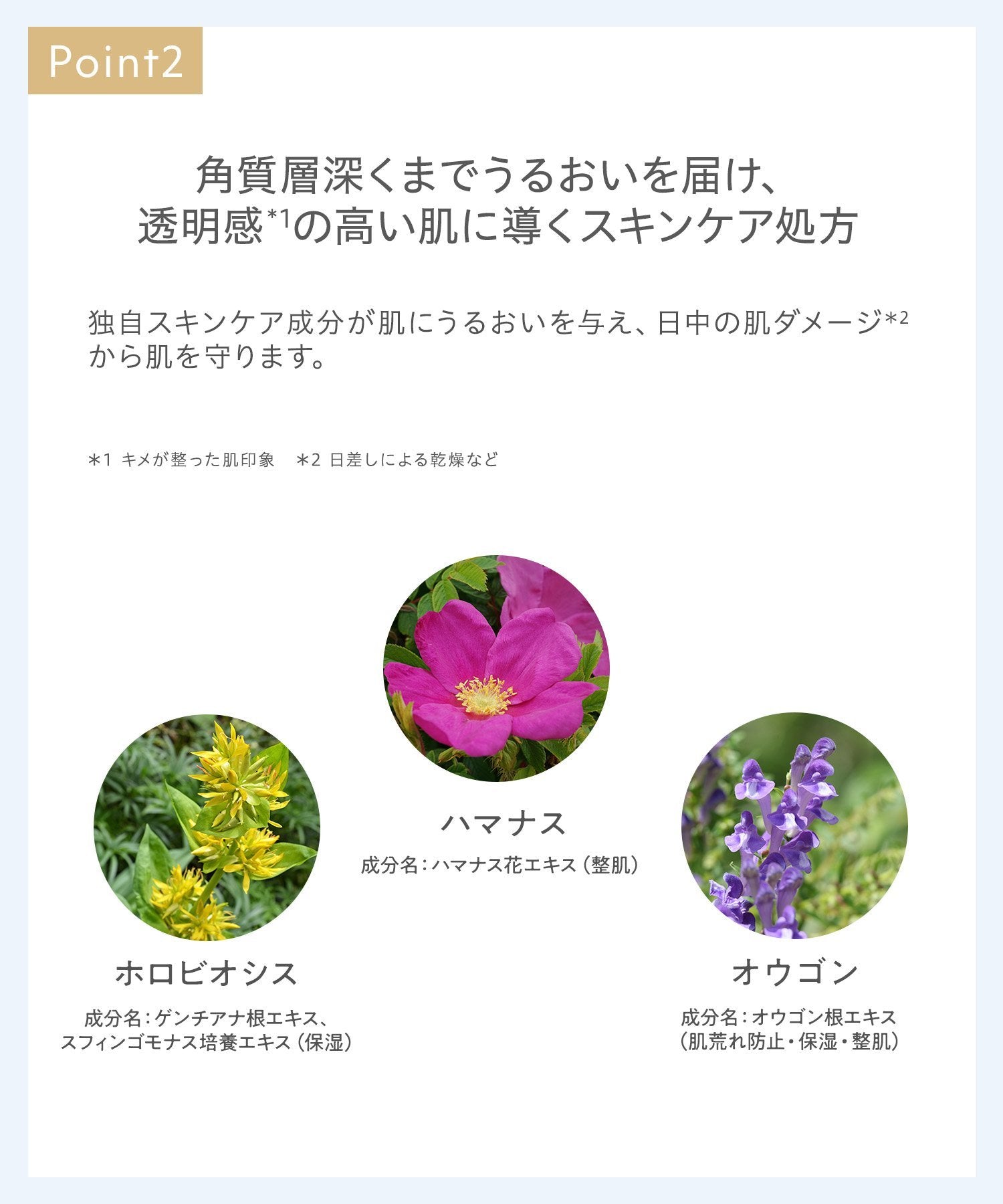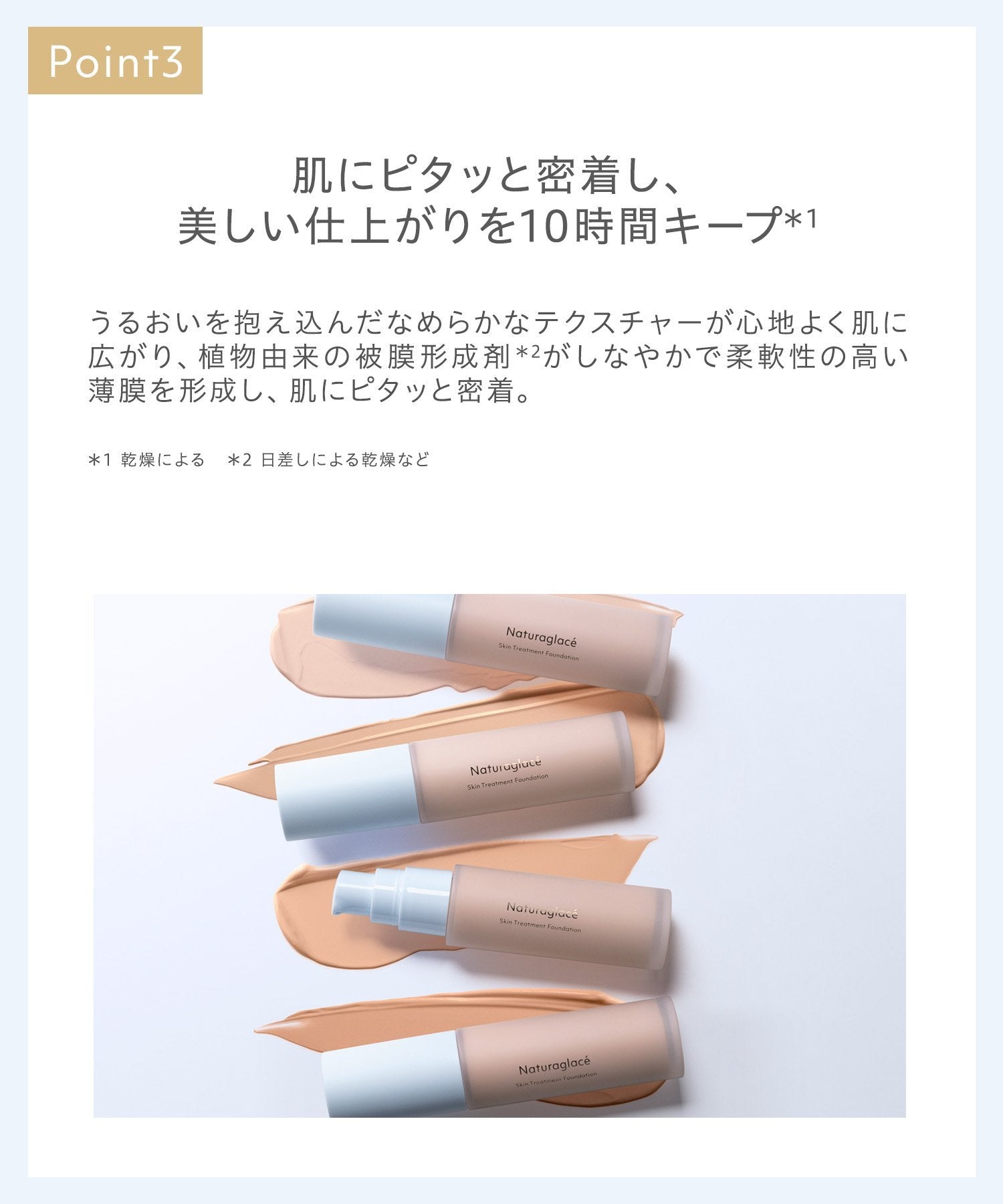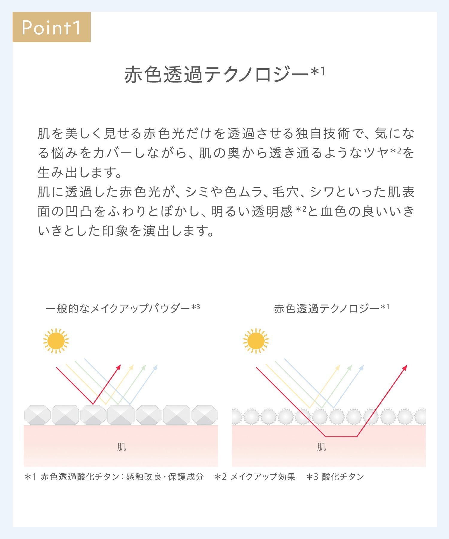 *1 The look of refined, even texture. *2 Such as dryness from sun exposure. *3 Due to dryness.