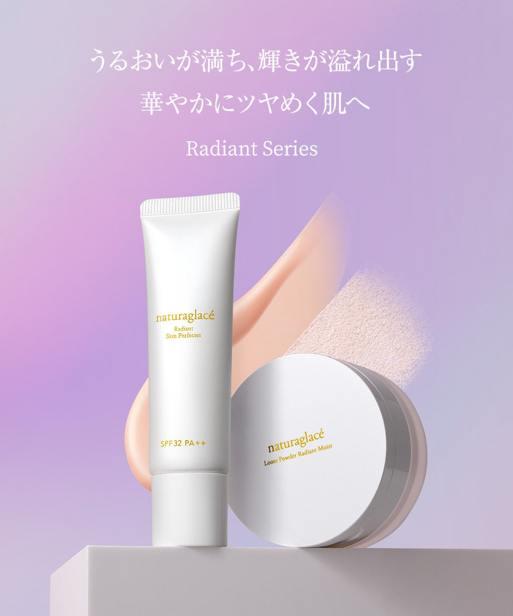 The "Radiant Series," which creates a skin full of moisture and a healthy glow with SPF32 PA++, will be released for a limited time. Naturaglace's vision of "transparency" in the skin is a combination of "moisture-filled freshness" and "natural healthy coloration." The "Radiant Series" enhances the overall transparency of the skin while solving winter skin concerns such as dryness that causes makeup breakdown, dullness, and roughness. The Radiant Skin Perfector is a serum primer that solves winter skin problems caused by dryness and creates a skin with transparency. It focuses on the skin's moisture content, adjusts the skin tone, and leads to a finish that is moisturized deeply from the stratum corneum and has a transparent appearance. It has a watery, serum-like texture that gives the skin a smooth and silky impression.