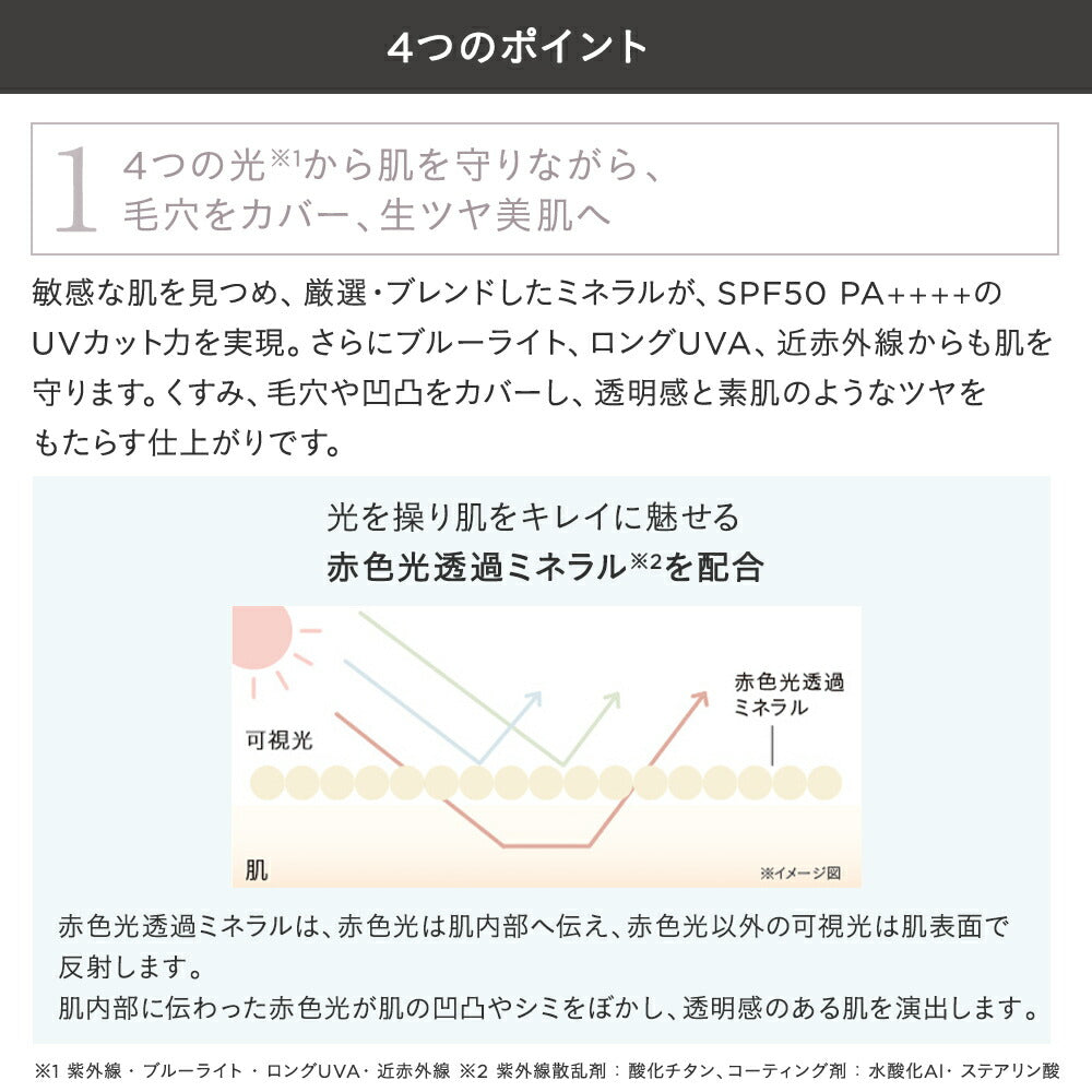 - UV protection: SPF50, PA++++