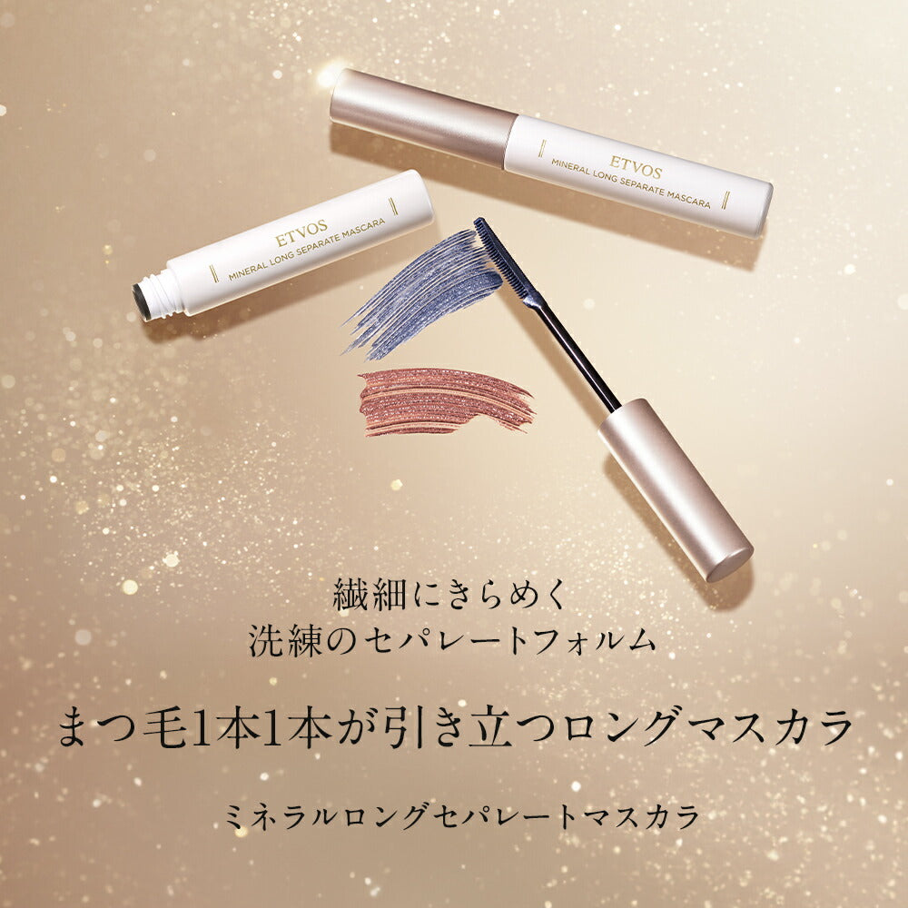 A long mascara that delivers beautifully separated lashes that shimmer with a wet-like gloss and delicate sparkle, available for a limited time. Delicate pearls and nuanced colors with mild color development, like crushed star fragments, beautifully adorn each individual lash. While creating a glamorous look suitable for the holiday season, the smoothly extended lashes blend into the expression for a natural finish. With every blink, it captivates the gaze, radiating both a sense of presence and a refined subtlety, leading to sophisticated eyes.